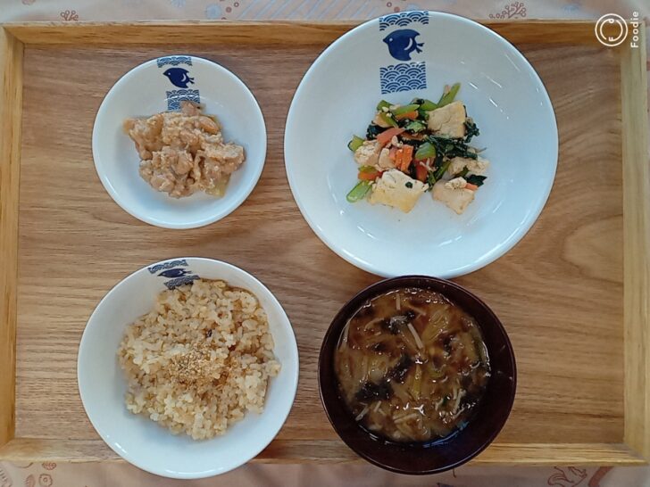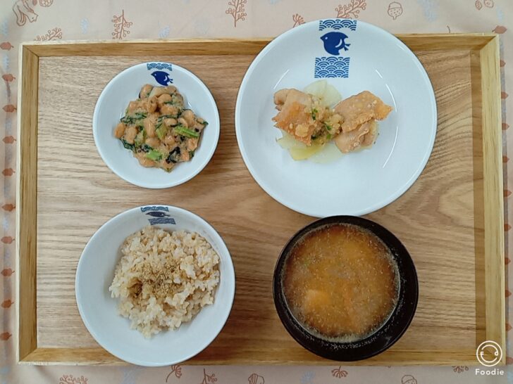今日のから揚げには大根おろしの「みぞれ餡」がかかっています。少し生姜を加えてあり、さっぱりと食べることができます。大根おろしは消化を助けて胃腸を整えたり、体の中の毒素を出すことを助けてくれます。お肉と食べると相性が良いです。また、旬をむかえて甘くてみずみずしくなってきています☆