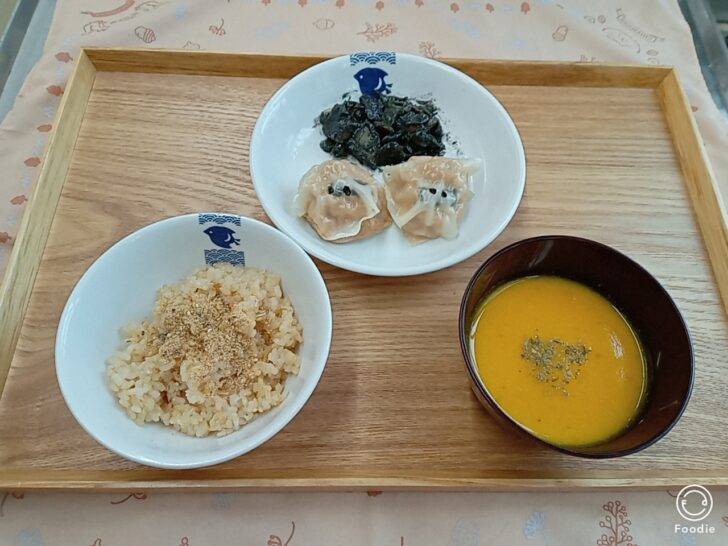 今日はハロウィンなのでハロウィンメニューです!おばけシューマイ、南瓜ポタージュ、真っ黒のさつま芋の黒ごまサラダでした。ハロウィンの日に南瓜を飾ったり、南瓜料理を食べるのは、秋の収穫をお祝いし悪いものを追い払うためとの言い伝えもあります。みんなでハロウィンメニューを楽しみました♪(*^^*)