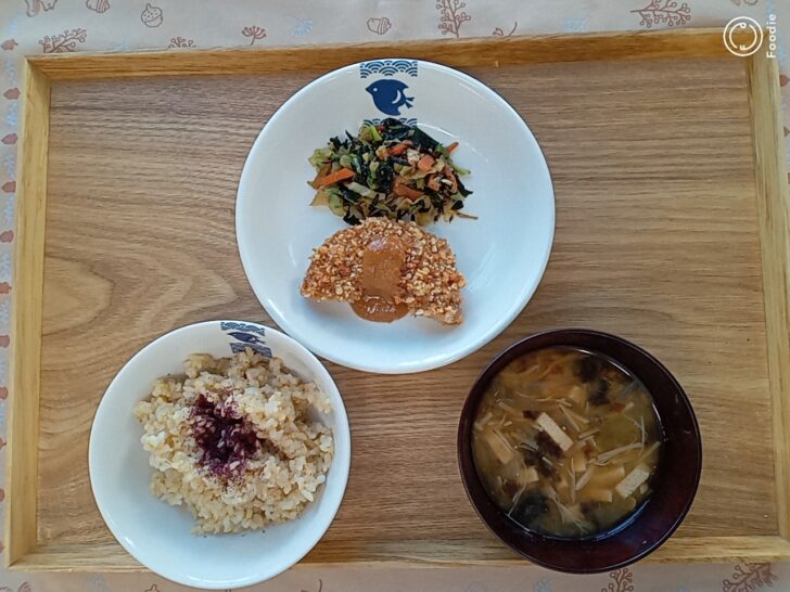 *海苔の味噌汁(海苔、玉ねぎ、えのき、高野豆腐)
