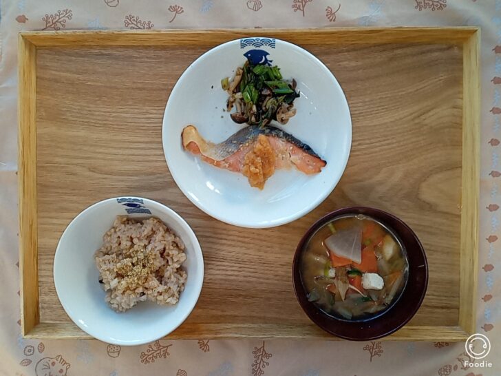 *味噌けんちん汁(ごぼう、大根、人参、干し椎茸、葉葱、油揚げ、豆腐、味噌)
