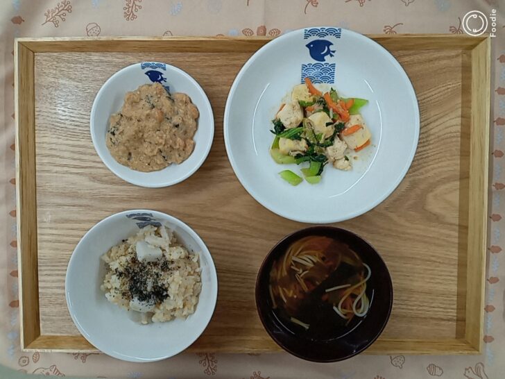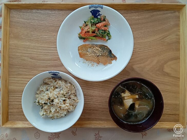 今日のご飯は「わかめ」「じゃこ」「キヌア」が入っています。カルシウムなどのミネラルやビタミンDなど栄養たっぷりのご飯でした(*^^*)