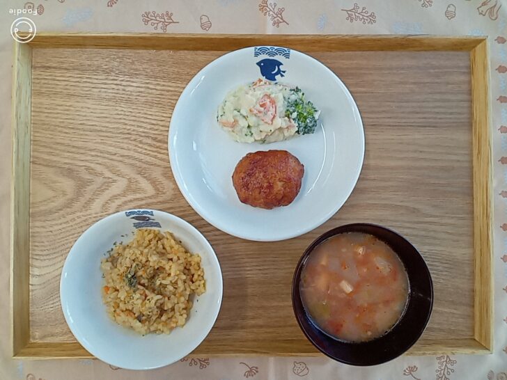 今日のサラダは「ばんばんサラダ」でした。ごぼうがたくさん入っていて、噛み応えがあります。よく噛むことは歯並びをよくするだけでなく、脳への血流を促したり、おなかの消化を助けて体の調子を整えることにも繋がります☆(*^^*)