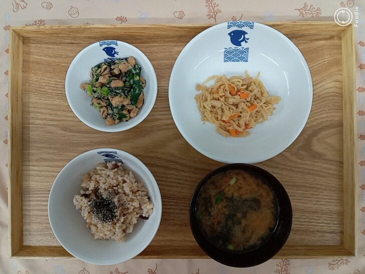 明日は満月なので、満月メニューです。3月に入り、空気も春らしくなってきています。切干大根の煮物には、「筍」が入っています。そして納豆和えは梅酢でさっぱりと仕上げています(*^^*)