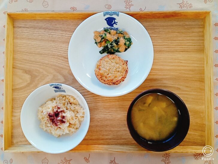 *じゃこ納豆和え(納豆、じゃこ、小松菜、大根おろし)