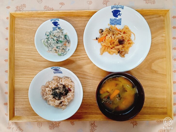 今日は満月なので満月メニューでした。乾物や小豆を食べると体の中をスッキリきれいにしてくれます。白和えは先生も子どもたちも大好きなメニューです☆