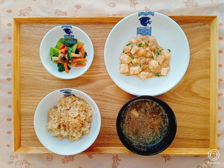 *納豆麻婆豆腐(木綿豆腐、納豆、大豆、白葱、にんにく、生姜)