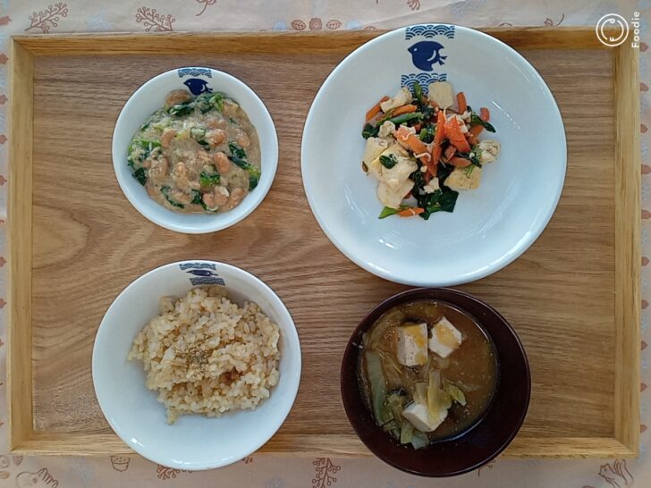 *豆腐と青菜の炒め物(豆腐、小松菜、人参、じゃこ、すりごま)